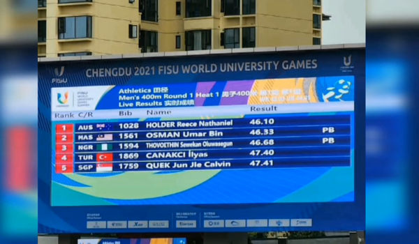 CHENGDU, 2 Ogos-Pemenang pingat emas Sukan SEA acara 400 meter lelaki, Umar Osman terus menampilkan larian bertenaga di temasya Sukan Universiti Dunia di Chengdu, China,