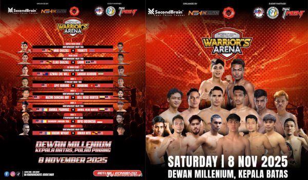 PULAU PINANG, 8 November – Aksi sukan tempur bakal menggegarkan utara tanah air apabila Warrior’s Arena 2025 membuka gelanggang di Dewan Millenium, Kepala Batas hari ini.