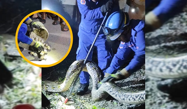 Python and 30 eggs discovered in Kuching village