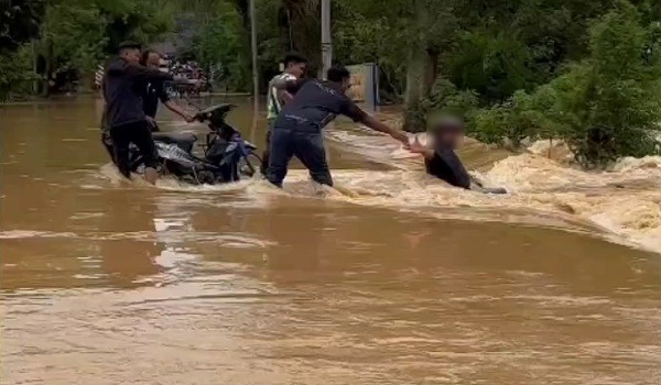 Penunggang motosikal nyaris dihanyutkan banjir di Jitra