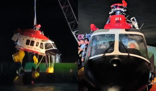Bangkai helikopter A3139 dibawa naik tengah malam tadi