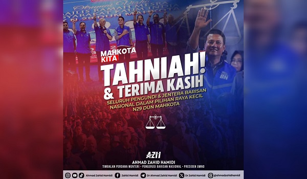 PRK Mahkota: BN menang besar dengan majoriti 20,648 undi