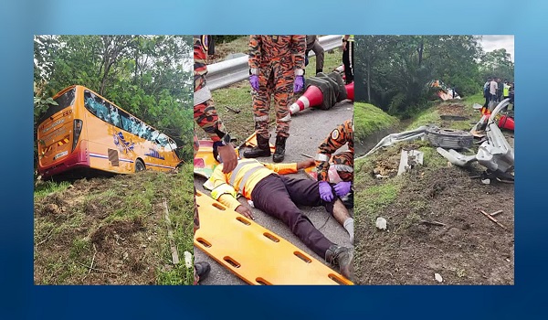 Bas masuk gaung di Lebuhraya PLUS, 24 penumpang selamat