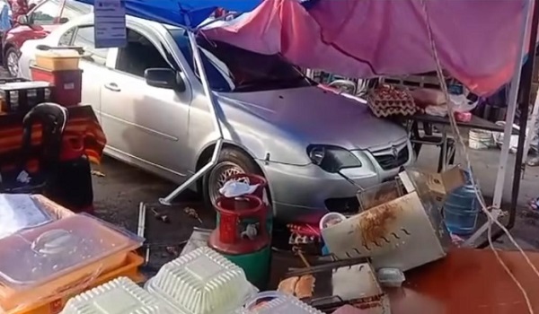 Kereta rempuh gerai, peniaga melecur 25 peratus terkena minyak panas