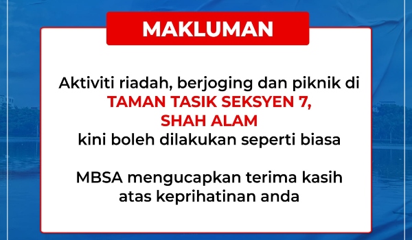 Taman Tasik Seksyen 7 dibuka semula hari ini
