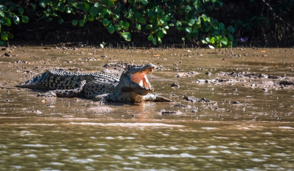 Buaya tembaga ‘berjemur’ di hutan paya bakau Kina Benuwa