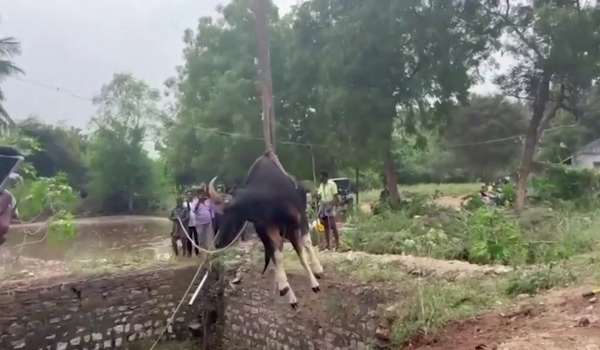Bison seberat 1,300 paun jatuh perigi, diselamatkan