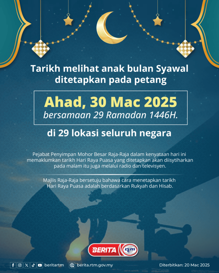 TARIKH MELIHAT ANAK BULAN SYAWAL DITETAPKAN PADA PETANG AHAD, 30 MAC 2025