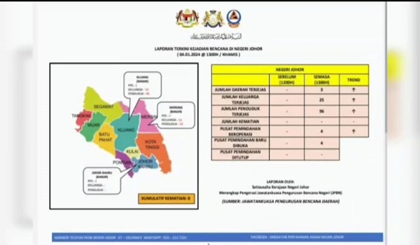Banjir Johor: Penduduk terjejas meningkat kepada 1,475 orang