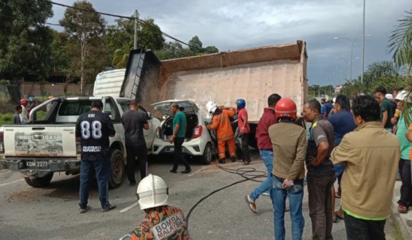 Lori tanah terbabas, akibatkan dua maut dan tiga cedera