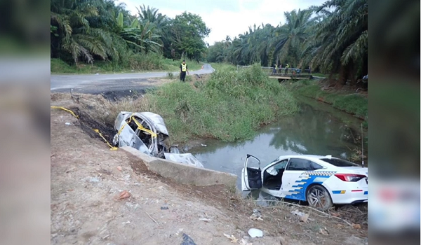 Lelaki rentung, dua anggota polis cedera kenderaan terbabas dalam parit