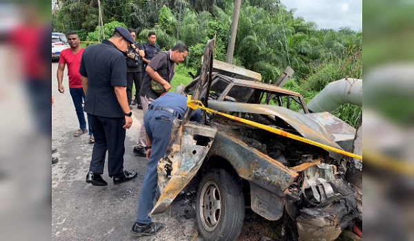 3 warga emas rentung , kereta rempuh tembok jambatan