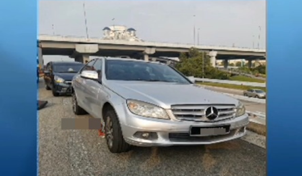 Penunggang motosikal parah tersepit di bawah kereta