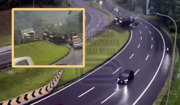 Kenderaan pengangkut kereta perisai terbalik di Lebuhraya Kuala Lumpur-Karak