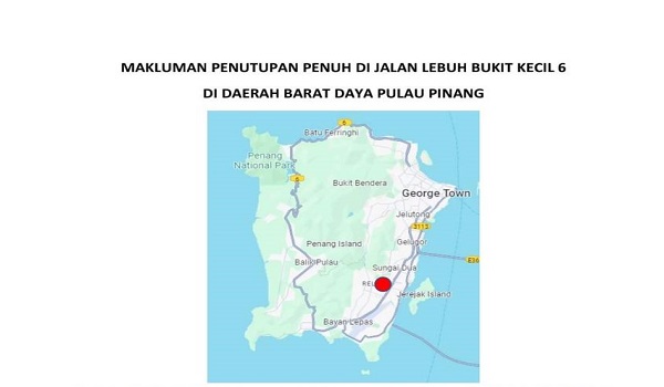 Kejadian lubang benam: Jalan Bukit Kecil 6, Taman Sri Nibong ditutup hingga 24 Oktober