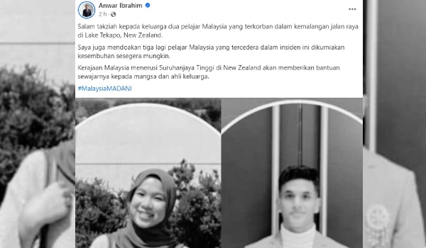 Anwar ucap takziah kepada keluarga dua pelajar Malaysia maut di New Zealand
