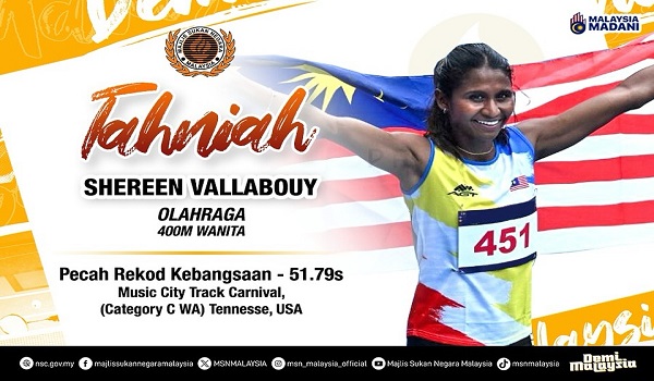 Shereen lebur rekod kebangsaan 400m miliknya di Tennessee