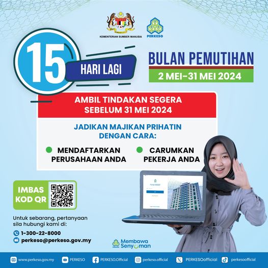 Majikan diberi tempoh hingga 31 Mei ini carum pekerja- PERKESO