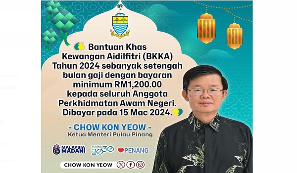 Penjawat awam Pulau Pinang dapat ‘duit raya’ setengah bulan gaji