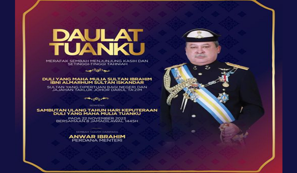 30,000 rakyat Johor dijangka meriahkan sambutan keberangkatan Sultan Johor, Rabu ini