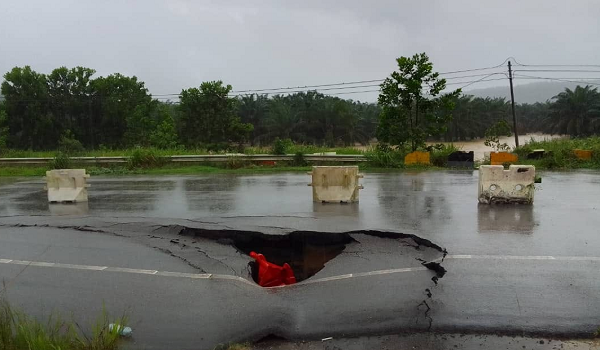 Sebahagian jalan Kuantan-Segamat ditutup ekoran jalan mendap