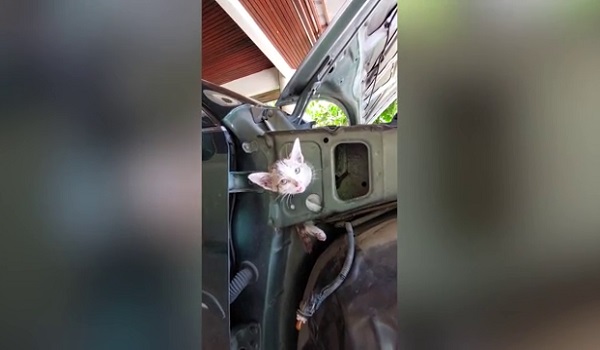 Individu ‘pecah’ panel sisi kereta, selamatkan kucing tersepit
