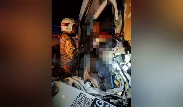 Bas rempuh treler: Pemandu tersepit, empat penumpang cedera