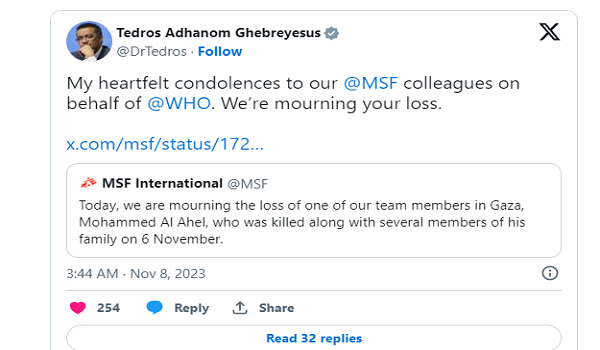 WHO ucap takziah atas kematian ahli pasukan MSF